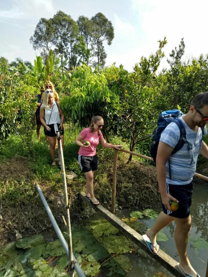 Afterwards, we ride a bit more and visit another house to make banana cake and get to taste some, it is a very nice cake you will try. On the way, we can see “monkey bridge”, get to know the locals’ life. The tour comes to an end there. Our guide will drop you back at your hotel.